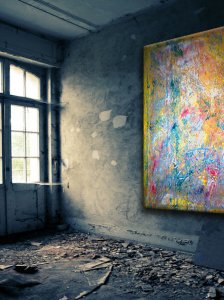 Meine Abstraktionen „Struktur ART“ beginnen mit dem Chaos auf dem Kunstträger und enden im harmonischen Farbenspiel mit geordneter Struktur.